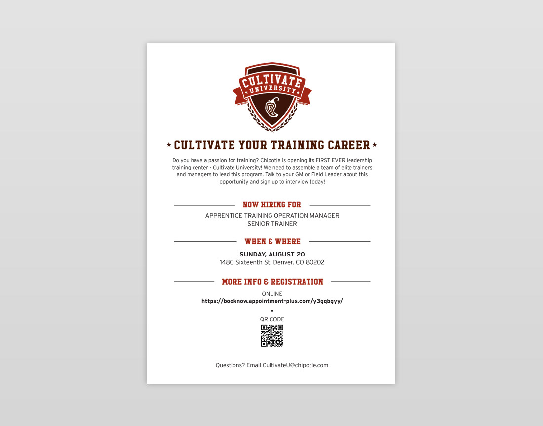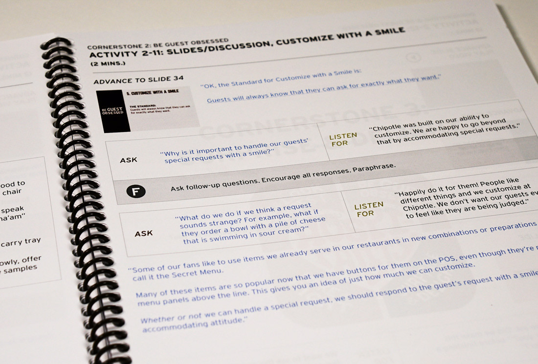 Brand collateral design for Chipotle's Hospitality Training.
