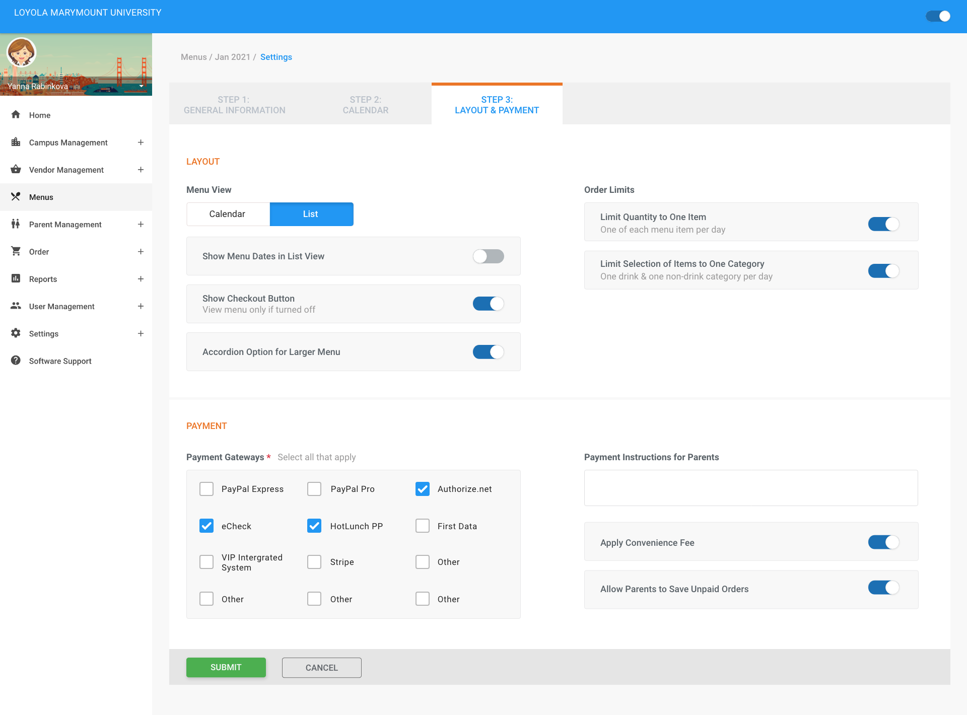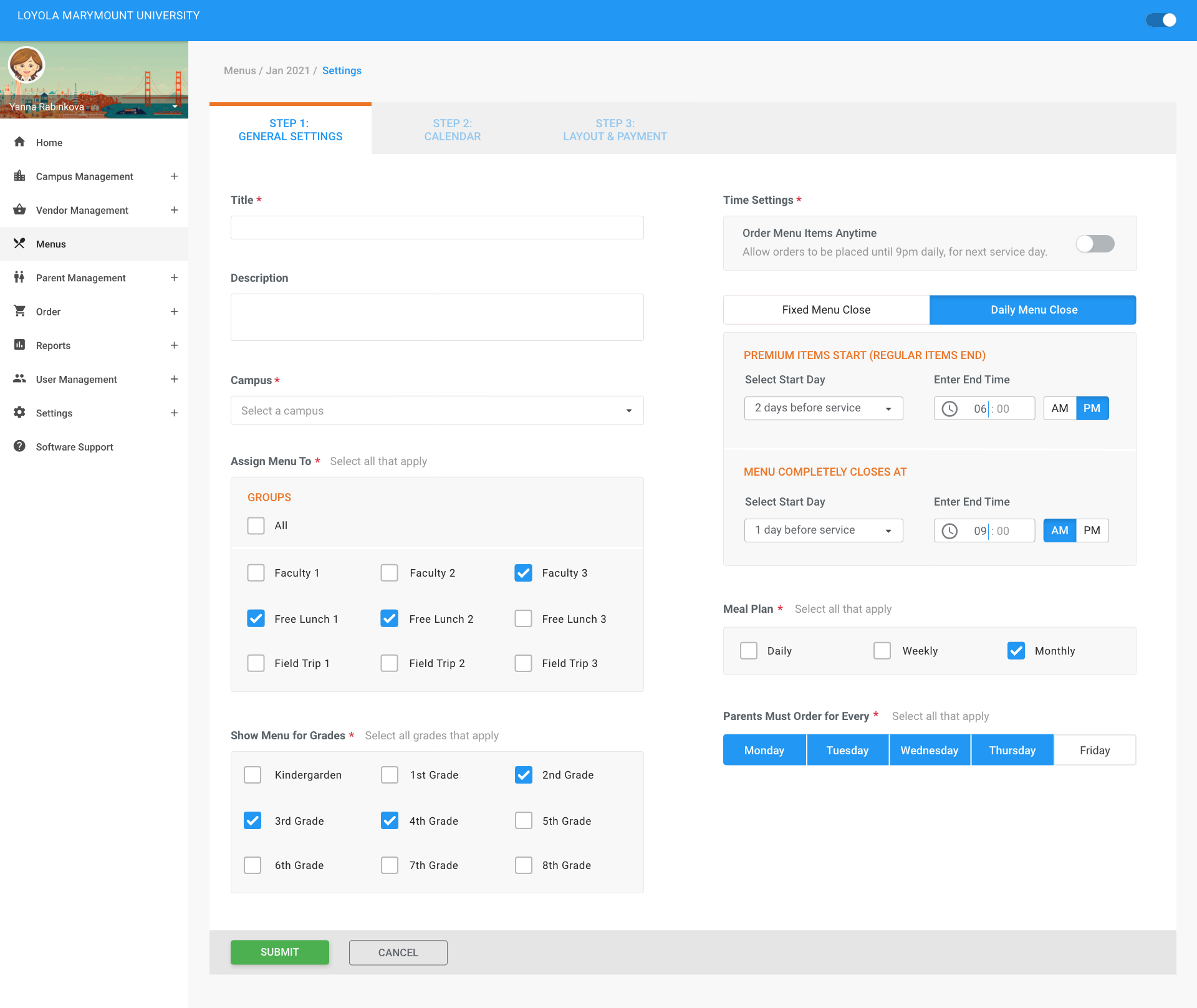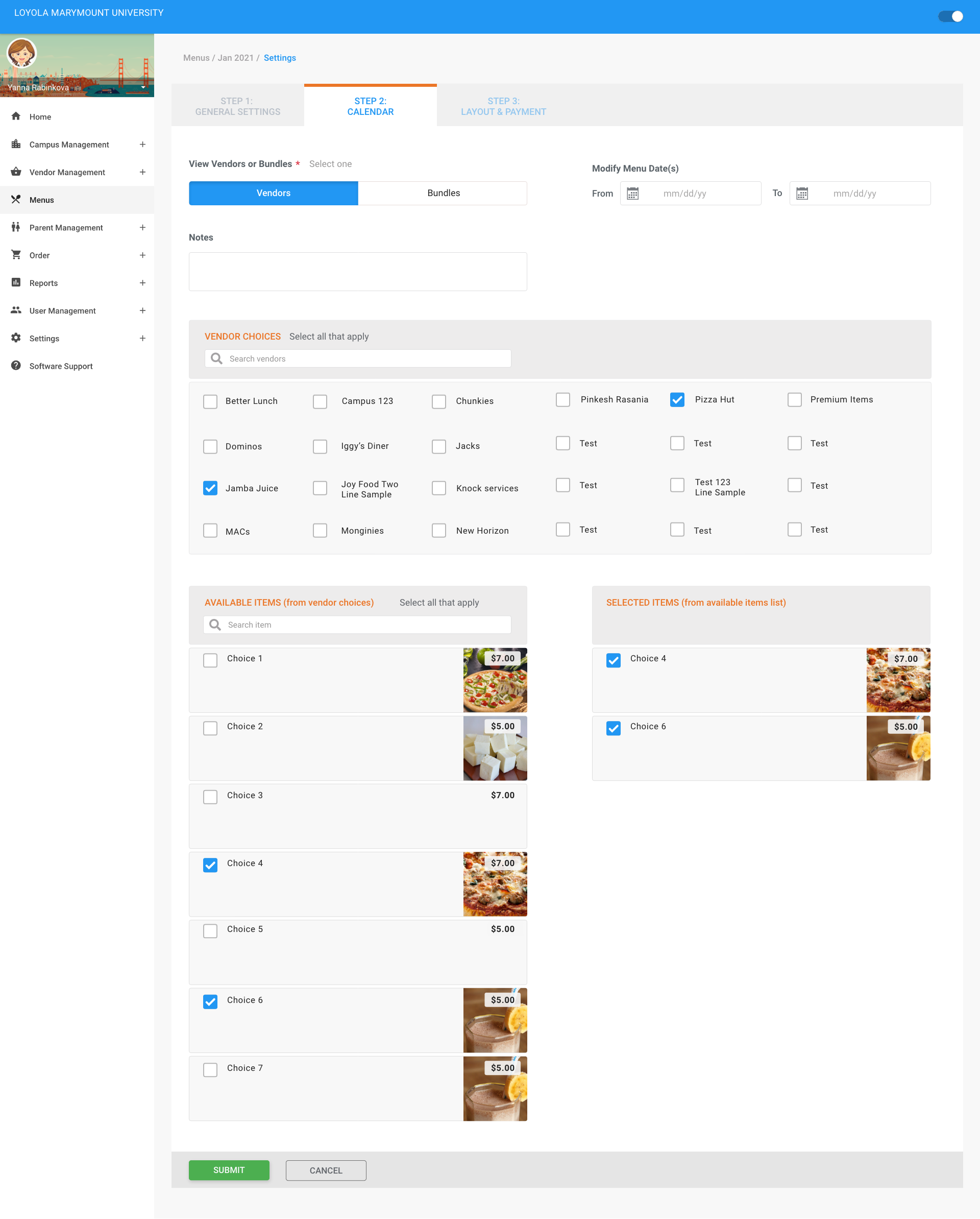e designs for Hot Lunch, a school lunch management web application. These designs are created to guide school administrators with managing the Menu portion of the application.
